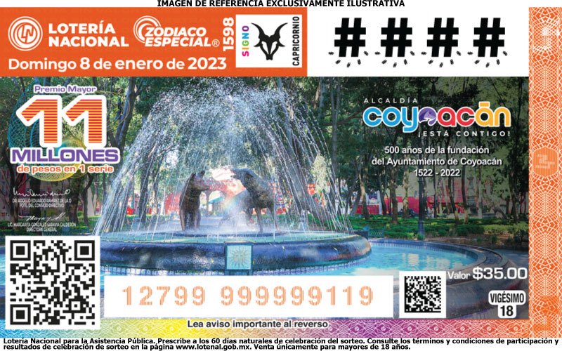 El Sorteo Zodiaco Especial No. 1598 se llevará a cabo en el Salón de Sorteos del Edificio Édison de la Lotería Nacional, el domingo 08 de enero de 2023 en punto de las 20:00 horas. Puedes seguir la transmisión del sorteo en vivo, a través de nuestro canal oficial de YouTube: ttps://www.youtube.com/user/VideotecaLotenal