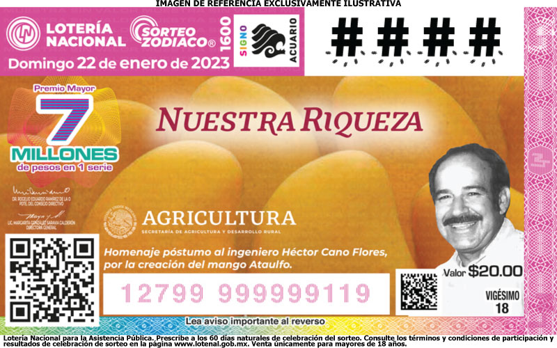 Este sorteo otorga un premio mayor por 7 millones de pesos. El costo de la fracción o cachito es de 20 pesos; mientras que el costo de la serie o entero es de 400 pesos.