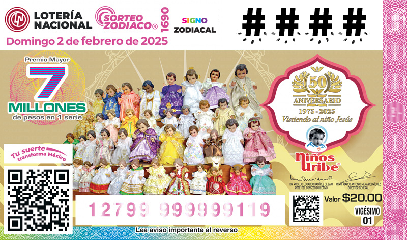 Este año, acompaña esta hermosa celebración con un cachito del Sorteo Zodiaco, que trae un Premio Mayor de 7 millones de pesos en una sola serie. Con solo $20 por cachito o $400 por serie, podrías convertir tus sueños en realidad y compartirlos con quienes más quieres.