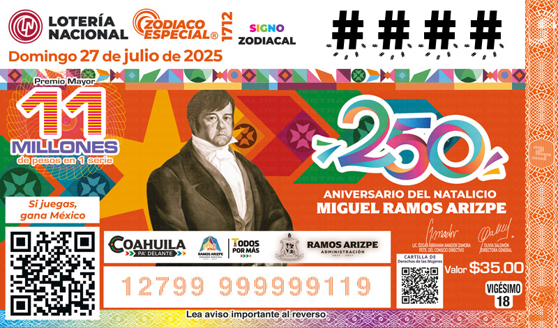 Celebrado en el “Salón de Sorteos del Edificio Edison de Lotería Nacional” Fecha: domingo 27 de Julio de 2025 Horario: 20:00 horas. Puedes seguir la transmisión en vivo del sorteo a través de nuestro canal oficial de YouTube: https://www.youtube.com/user/VideotecaLotenal