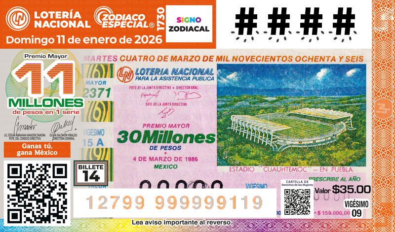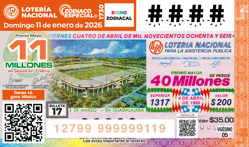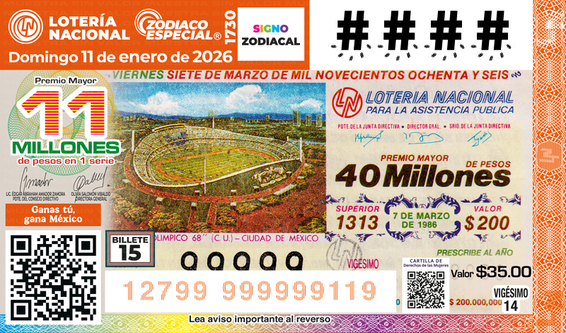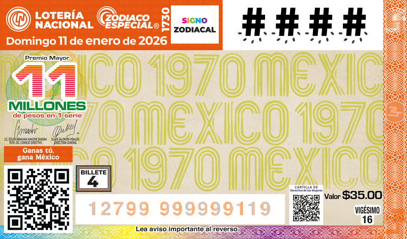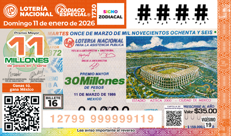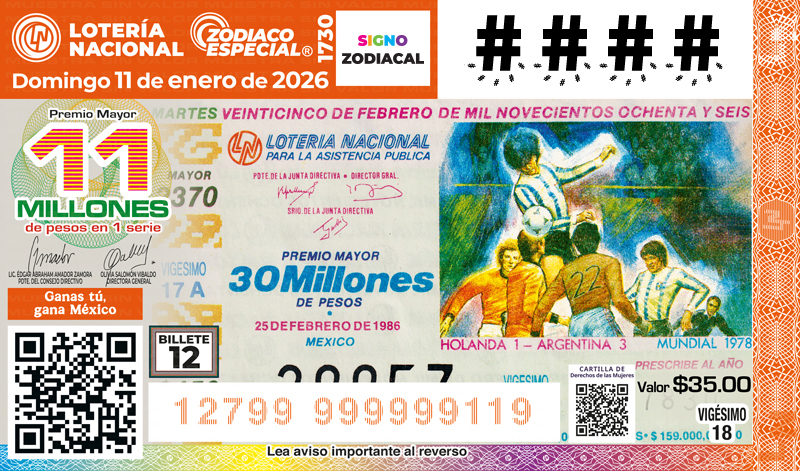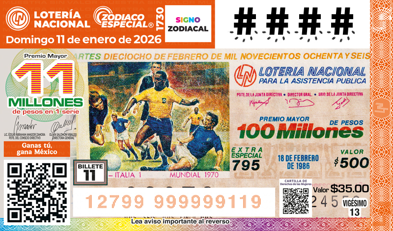 En el contexto del máximo evento futbolístico internacional, la Lotería Nacional realiza el Sorteo Zodiaco Especial No. 1730 como un homenaje a la historia, la identidad y la memoria colectiva del fútbol en México. Esta emisión conmemorativa recupera los momentos que han marcado al país como sede mundialista y jugadas icónicas en la historia de los mundiales, así como la reivindicación histórica del Mundial Femenil de 1971, reconociendo a sus protagonistas como parte fundamental del legado deportivo nacional. Mediante una emisión conmemorativa de 20 billetes, la institución rinde homenaje a los mundiales de 1970 y 1986, así como al Mundial Femenil de 1971, reconociéndolas como subcampeonas y protagonistas pioneras. Esta colección permite al público adquirir nuevamente billetes conmemorativos de épocas pasadas, incluso aquellos que no pudieron obtener en su momento, convirtiendo cada cachito en un objeto de memoria compartida. Como parte de esta iniciativa, la institución presenta el Álbum Retro Lotería Nacional y el Fútbol, concebido como un puente entre generaciones. El álbum recupera la tradición gráfica de la Lotería Nacional y la entrelaza con la historia del balompié, invitando a revivir emociones, recordar gestas deportivas y compartir relatos que han dado forma a la identidad futbolera del país. Su entrega gratuita a quienes adquieran las series completas del sorteo refuerza el carácter social y cultural de esta propuesta. Este sorteo que se realiza con especial entusiasmo, se inscribe en el camino rumbo a México 2026, y culmina con el billete “Un país, una pasión”, como símbolo de unión, orgullo e identidad nacional.