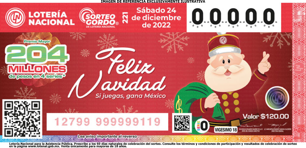 El Sorteo Gordo de Navidad No. 221 otorga un premio Mayor de 204 millones y dando un premio principal con una serie de 51 millones. El costo de la fracción o cachito es de $120.00; mientras que el costo de la serie o entero es de $2,400.00.