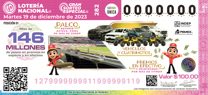 GRAN SORTEO ESPECIAL 282 CON PREMIOS EN ESPECIE Y EN EFECTIVO