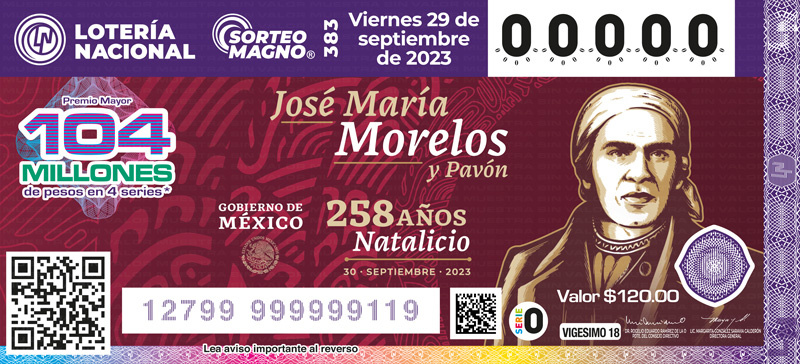 El Sorteo Magno No. 383 otorga un premio principal con una serie de 26 millones. El costo de la fracción o cachito es de $120.00; mientras que el costo de la serie o entero es de $2,400.00