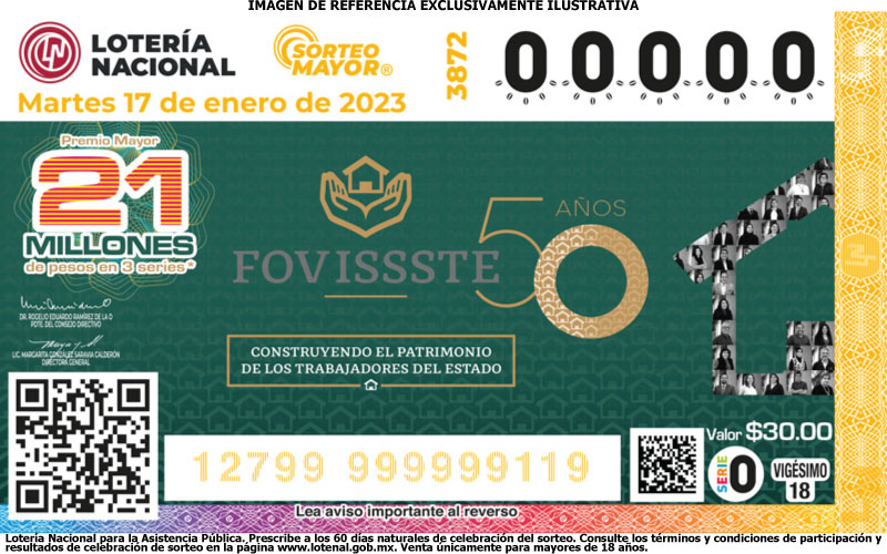 En Lotería Nacional reconocemos a todas aquellas instituciones que son baluarte de nuestra identidad y soberanía nacional. Por ello, celebramos el 50° aniversario de FOVISSSTE con un billete de Lotería que busca reconocer la pasión, la entrega, el compromiso y el gran trabajo que desempeñan las mujeres y hombres. FOVISSSTE es la institución financiera encargada de otorgar créditos para vivienda a los trabajadores al servicio del Estado, la cual cumple 50 años siendo una institución de competitividad global, con una clara vocación social y un gran sentido de responsabilidad como organismo público. Creado en 1972, esta institución tiene como objetivo apoyar a trabajadores del Estado como maestros, policías, enfermeras, profesores y trabajadores administrativos para que adquieran una vivienda digna y decorosa en legítima posesión, así como apoyarlos para generar un retiro sustentable, a través, de una eficiente administración de sus aportaciones. Fovissste apoya de manera íntegra y sin distinciones, otorgando a los trabajadores los créditos necesarios y accesibles para que puedan adquirir una vivienda. En lo que va del 2022 la institución contempla otorgar hasta 58 mil 731 financiamientos por 39 mil 538 millones de pesos, lo que representa 4% de incremento tanto en número de créditos como en monto con respecto al 2021.