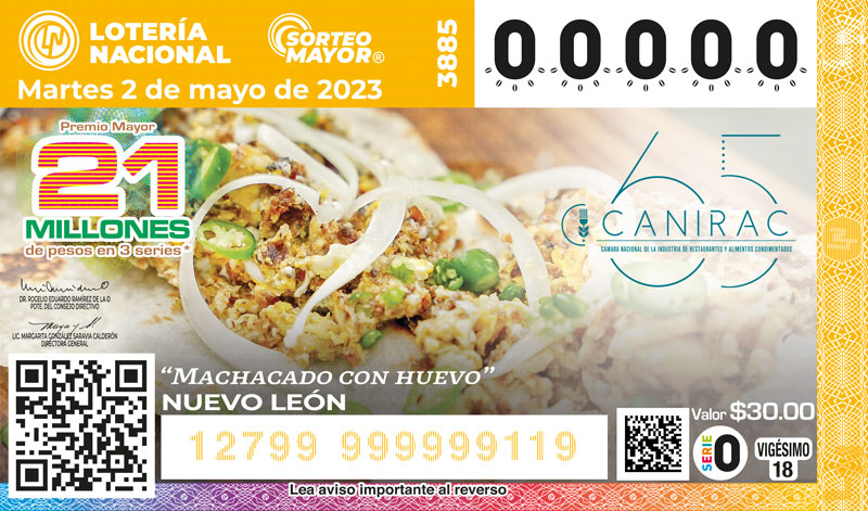 El Sorteo Mayor No. 3885 se llevará a cabo en el Salón de Sorteos del Edificio Édison de la Lotería Nacional, el martes 02 de mayo de 2023 en punto de las 20:00 horas.