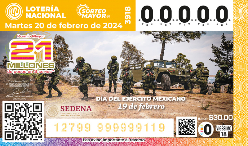 ejército mexicano con un billete de Lotería que busca reconocer la pasión, la