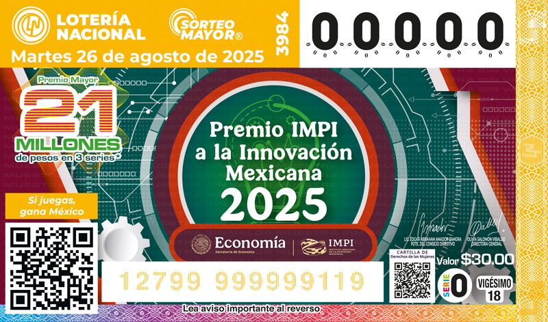 Celebrado en el “Salón de Sorteos del Edificio Edison de Lotería Nacional” Fecha: martes 26 de agosto de 2025 Horario: 20:00 horas. Puedes seguir la transmisión en vivo del sorteo a través de nuestro canal oficial de YouTube: https://www.youtube.com/user/VideotecaLotenal